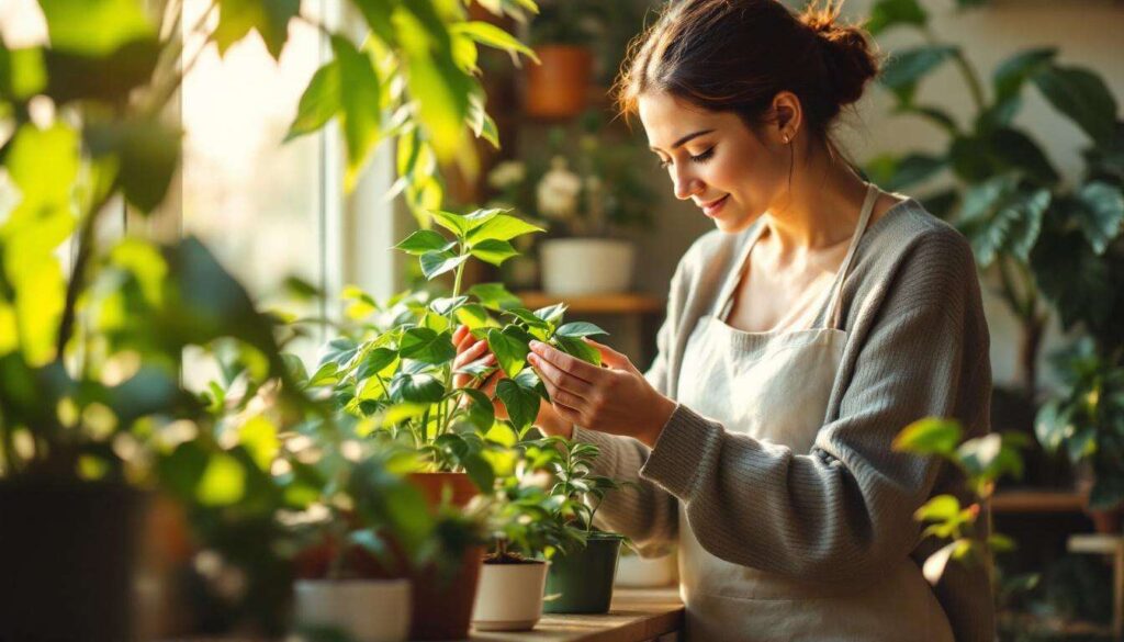 Il riscaldamento domestico riduce drasticamente l’umidità dell’aria. Nebulizzazioni regolari ol’uso di umidificatori aiutano a mantenere condizioni favorevoli per le specie tropicali. Per le piante mediterranee, un’umidità moderata è sufficiente.
