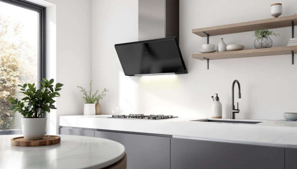 Un’altra alternativa prevede sistemi installati nel soffitto che scendono solo quando necessario. Questi dispositivi offrono un’estetica minimalista e si integrano perfettamente in cucine con isole centrali dove una cappa tradizionale risulterebbe troppo invasiva.