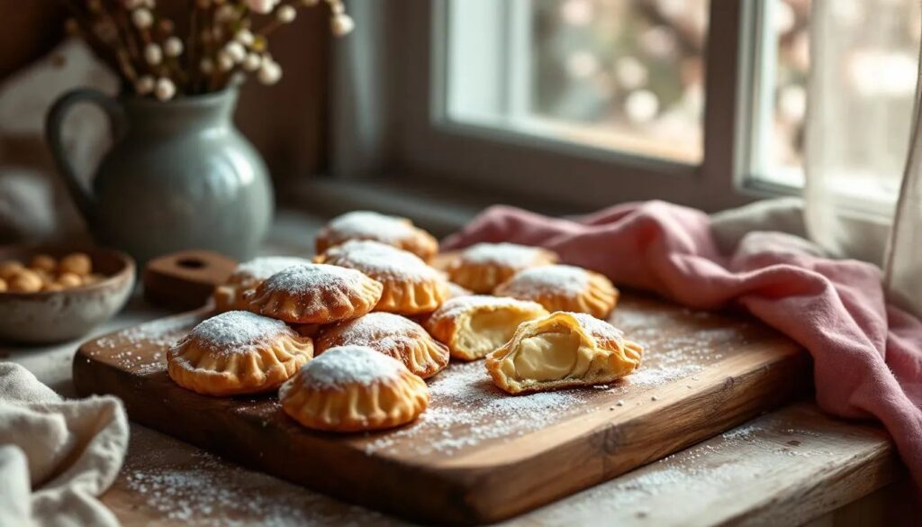 Con l’arrivo della primavera e le giornate di Pasqua alle porte, la cucina siciliana torna a profumare di ricotta fresca, scorza d’arancia e cioccolato fondente. Le cassatelle al forno sono uno di quei dolci che sanno raccontare una stagione intera: la leggerezza della pasta sfogliata che si incurva sui ripieni morbidi, il bianco cremoso della ricotta di pecora appena lavorata, le gocce di cioccolato che si sciolgono lentamente nel calore del forno. A differenza della versione fritta, quella al forno alleggerisce la preparazione senza tradire l’anima del dolce.
