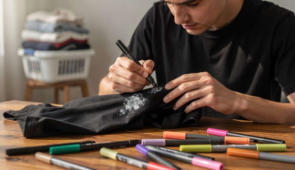 Conoscere le caratteristiche specifiche dei tessuti scuri permette di apprezzare meglio l’efficacia della soluzione con il pennarello, che sfrutta proprio la natura dei pigmenti per ripristinare l’aspetto originale del capo.