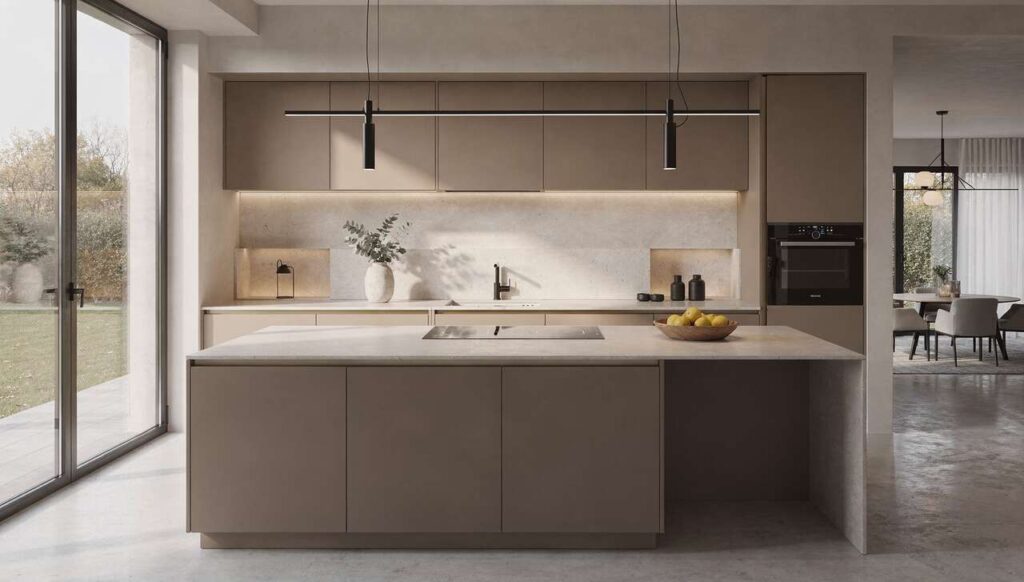 Il design minimalista caratterizza le cucine senza pensili. Le linee pulite e l’assenza di ingombri creano un’estetica contemporanea che valorizza ogni elemento. Questo approccio privilegia la qualità sulla quantità, con materiali selezionati e finiture curate nei minimi dettagli.