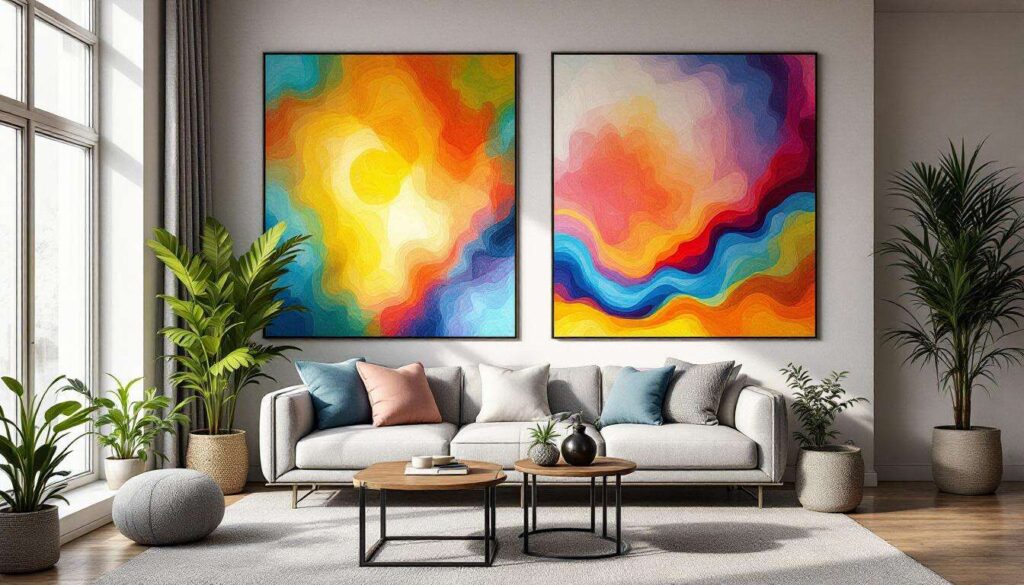 Le opere murali permettono di delimitare visivamente aree funzionali senza ricorrere a divisori fisici. Una parete caratterizzata nel living può distinguere la zona conversazione da quella pranzo, mantenendo fluidità e apertura.