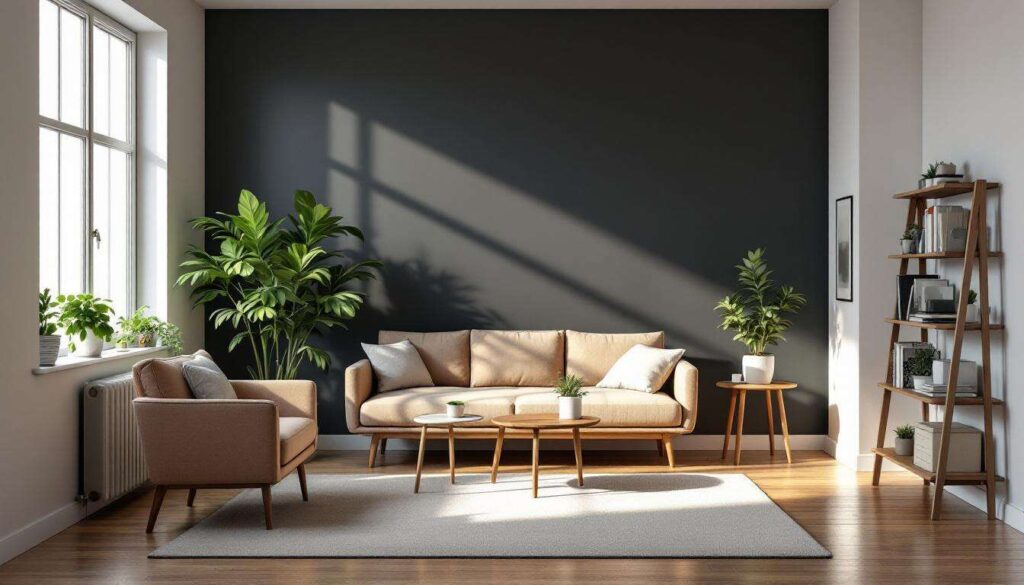 L’illuminazione artificiale deve essere pianificata in funzione della parete scura: faretti orientabili o lampade da parete possono valorizzare la superficie e creare effetti scenografici. Infine, il coordinamento con arredi e tessuti è essenziale per creare un ambiente armonioso e bilanciato.