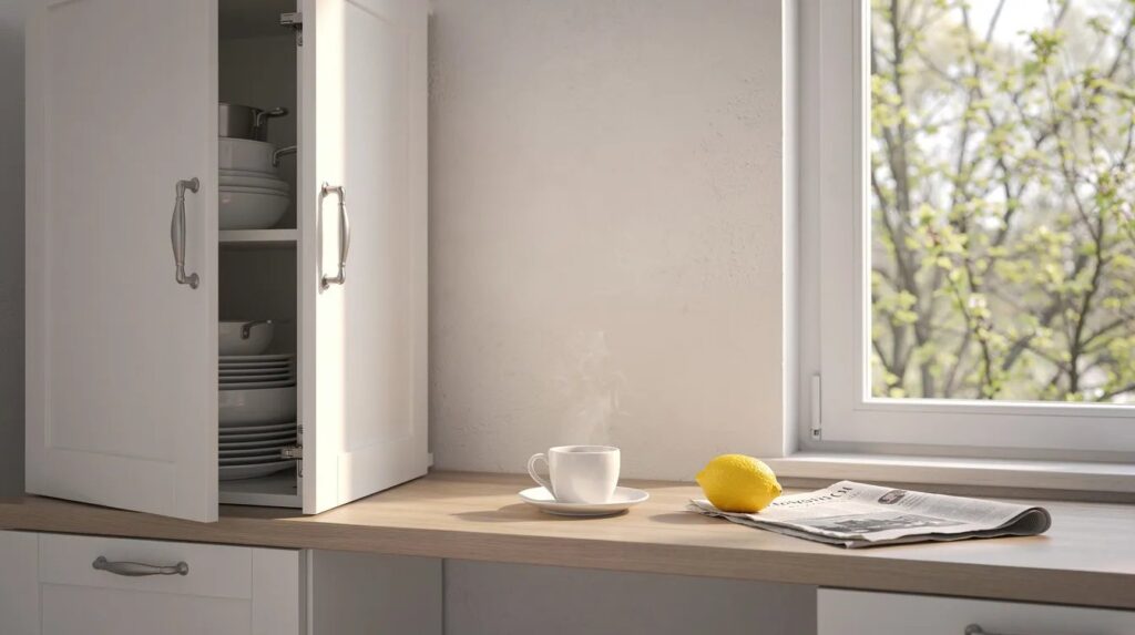 Il primo motivo è il prezzo. Una cucina lineare BODBYN completa di pensili, basi, cassetti e ante, senza elettrodomestici, si aggira orientativamente tra i 900 e i 1.800 euro secondo la configurazione, un costo che rimane inferiore alla media delle cucine componibili equivalenti da altri produttori. Il secondo motivo è l’estetica: il bianco sporco — tono caldo, non freddo come il bianco ottico — si abbina facilmente a quasi ogni pavimentazione, dal parquet chiaro alle piastrelle in gres grigio tipiche degli appartamenti ristrutturati negli anni Novanta.