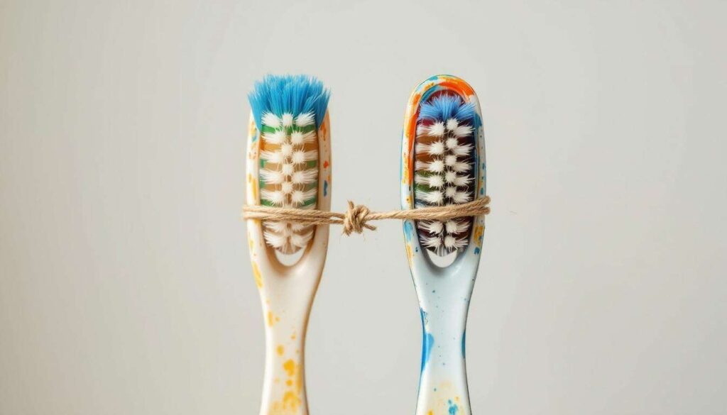 • Due spazzolini da denti usati con setole ancora in buone condizioni