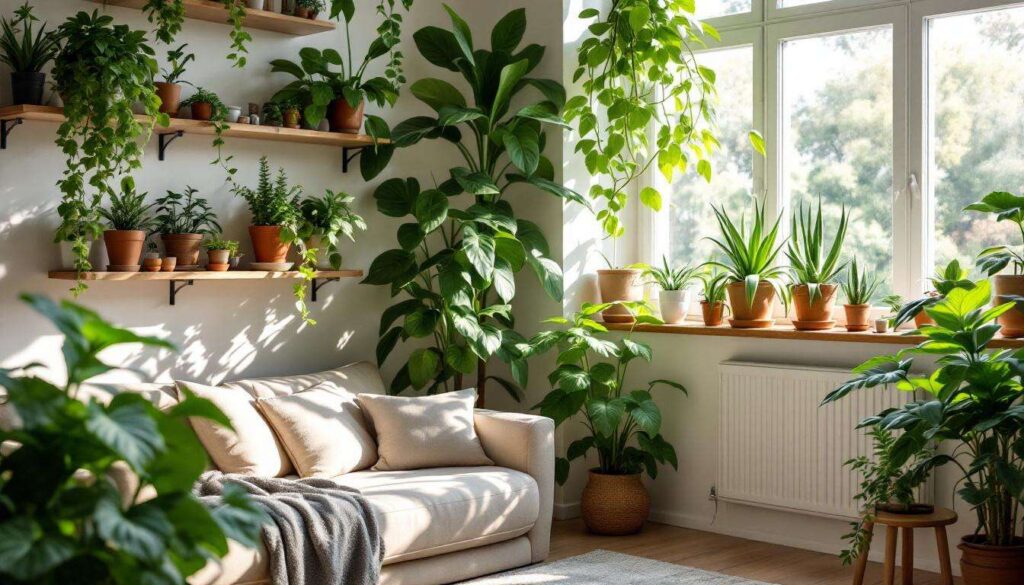Raggruppare piante con esigenze simili facilita la manutenzione e crea punti focali vegetali che arricchiscono l’estetica degli interni, trasformando la funzione purificante in elemento decorativo intenzionale.