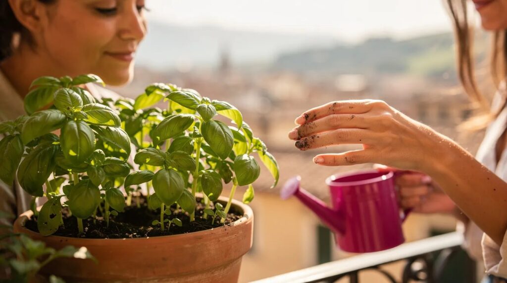 Gli agronomi che lavorano con orti urbani consigliano di posizionare i vasi più grandi — quelli di pomodoro e melanzana — contro la parete del balcone, che nelle ore serali restituisce il calore accumulato durante il giorno, riducendo lo stress termico notturno delle piante. In aprile, con le notti ancora fresche, questa posizione può fare la differenza tra una pianta vigorosa e una che stenta. Da maggio in poi, valutate invece di allontanare leggermente i vasi dalla parete per evitare il surriscaldamento nelle ore pomeridiane più intense.