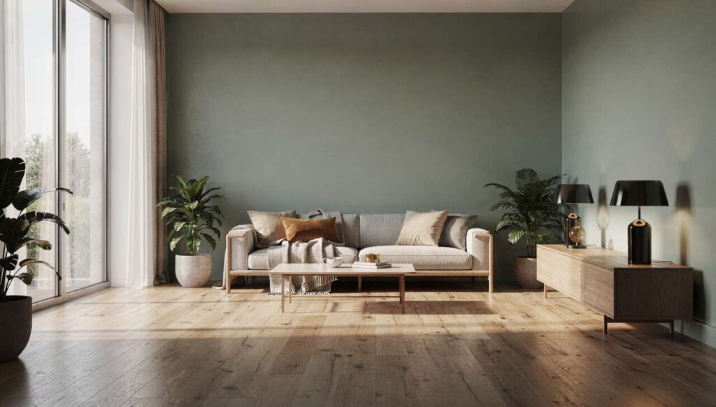 | Verde salvia + grigio chiaro | Elegante e contemporaneo | Soggiorni, uffici |