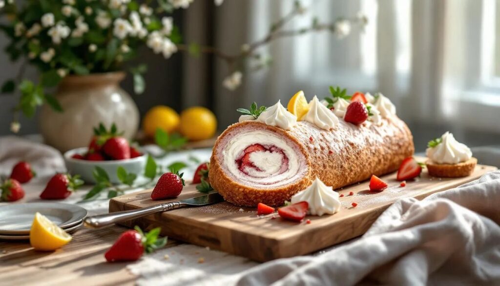 La base è un biscotto morbido già pronto, arrotolato attorno a una crema di panna fresca e fragole fresche a fette, senza gelatine artificiali né ingredienti complicati. La tecnica dell’arrotolamento può sembrare intimidatoria, ma con qualche accorgimento si rivela accessibile anche a chi in cucina ci va raramente. Venti minuti di lavoro, un passaggio in frigorifero e il rotolo è pronto: mettete il grembiule e iniziate.