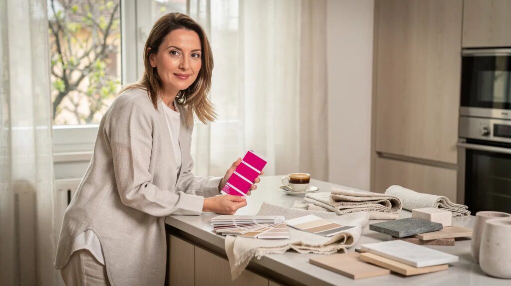 I verdi profondi e i rosati minerali funzionano anche in spazi ridotti, a condizione di essere abbinati a finiture opache e materiali naturali leggeri. Contrariamente a quanto si pensa, un colore saturo su una parete sola può aumentare la percezione di profondità di un ambiente piccolo. Il bianco caldo con anima cromatica è invece la scelta più universale: si adatta a qualsiasi dimensione senza rischi.