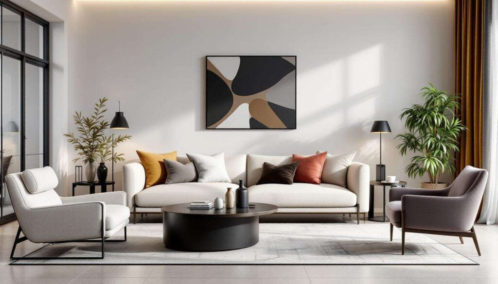 I colori neutri come il bianco, il beige, il grigio e il nero costituiscono la base della tavolozza minimalista. Queste tonalità creano un’atmosfera rilassante e permettono di valorizzare la qualità dei materiali e la purezza delle forme. Occasionalmente, un tocco di colore naturale come il verde salvia o il terracotta aggiunge calore senza disturbare l’equilibrio visivo.