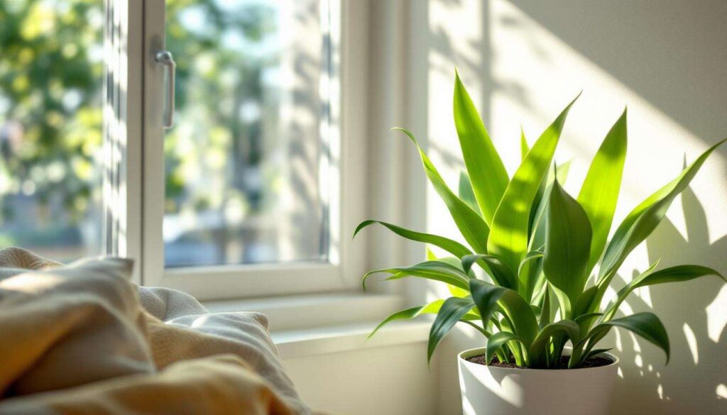 Anche se la sansevieria tollera condizioni di scarsa luminosità, una posizione vicino a una finestra con luce indiretta ottimizza le sue funzioni purificatrici. L’esposizione a nord o est risulta particolarmente favorevole.
