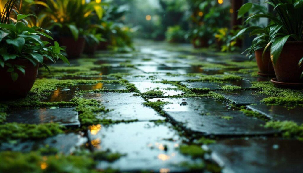 Il muschio si insedia attraverso spore trasportate dal vento che, trovando condizioni favorevoli, germinano rapidamente. Le alghe, invece, si sviluppano in presenza di acqua stagnante e luce diffusa. Entrambi gli organismi producono una sostanza mucillaginosa che aumenta l’aderenza alla superficie e crea quella pericolosa patina scivolosa. Una volta stabiliti, questi organismi si riproducono velocemente, estendendo la loro presenza su tutta la terrazza.