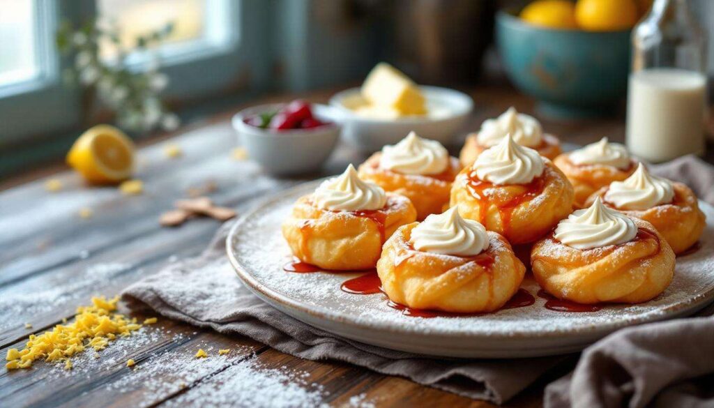 Per verificare che la pasta choux sia pronta, fate questa prova: l’impasto deve cadere dal cucchiaio formando un nastro che si ripiega lentamente su se stesso. Se è troppo sodo, aggiungete mezzo uovo leggermente sbattuto; se è troppo liquido, la cottura in forno non darà buoni risultati. Un altro segreto per zeppole perfettamente gonfie è non aprire mai il forno durante i primi 20 minuti: lo sbalzo termico farebbe sgonfiare irrimediabilmente la pasta. Infine, se volete una crema ancora più profumata, potete sostituire la scorza di limone con mezza stecca di vaniglia incisa longitudinalmente, lasciandola in infusione nel latte caldo per 15 minuti prima di procedere con la preparazione.